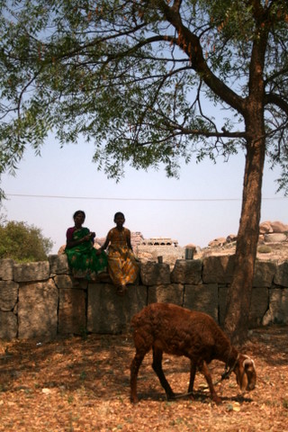 Family with goat