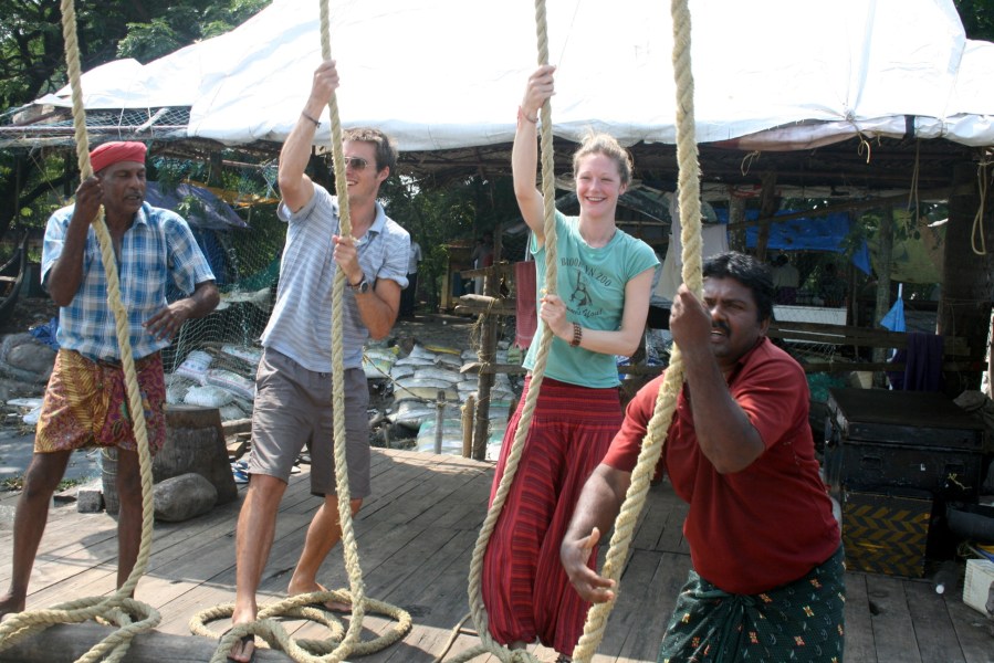 Hauling the catch in